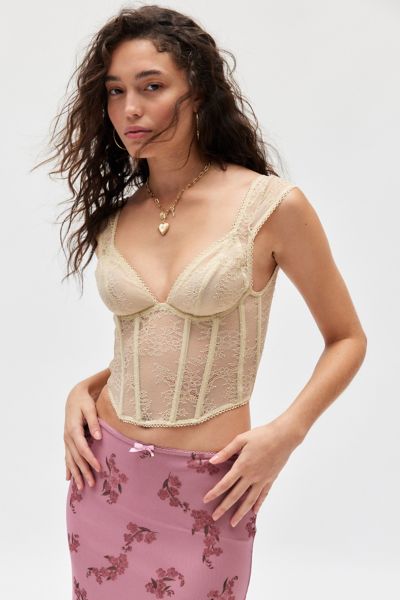 Amour Lace Underwire Corset In Cream, Women's At Urban Outfitters