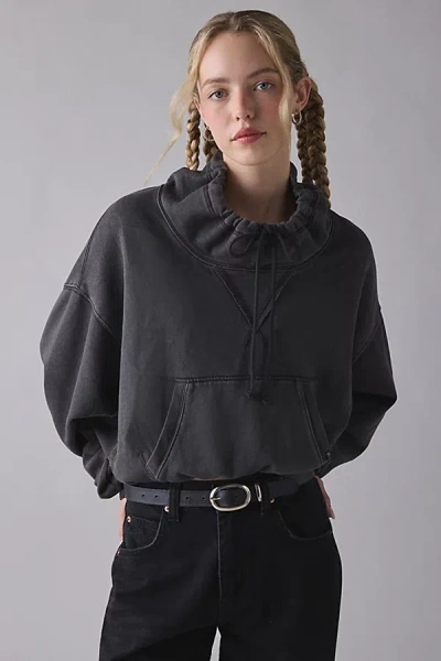 OUT FROM UNDER Hear Me Out Drawstring Mockneck Pullover Top In Charcoal, Women's At Urban Outfitters In Black
