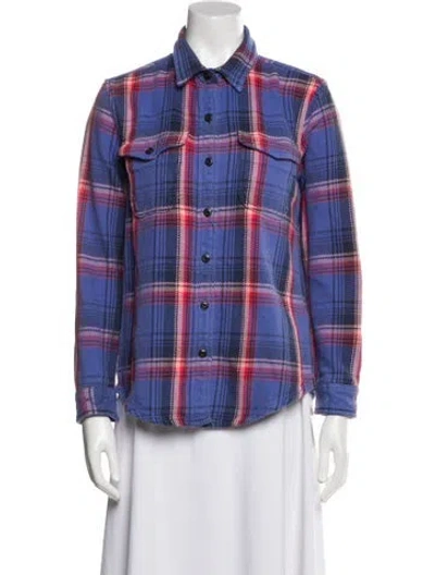Outerknown Jacket Blue Plaid Print Pointed Collar Flap Pockets & Button Closure Fit: Jackets by Outerknown typically fit true to size. | Outerknown Plaid Print Jacket in Blue, Women's XS