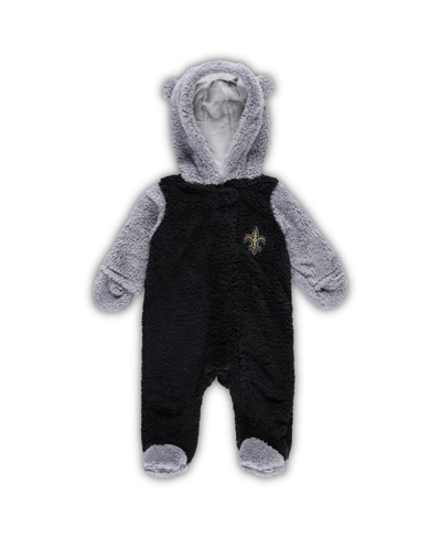 OUTERSTUFF Babies' Newborn & Infant Black/gray New Orleans Saints Game Nap Teddy Fleece Bunting Full-zip Sleeper