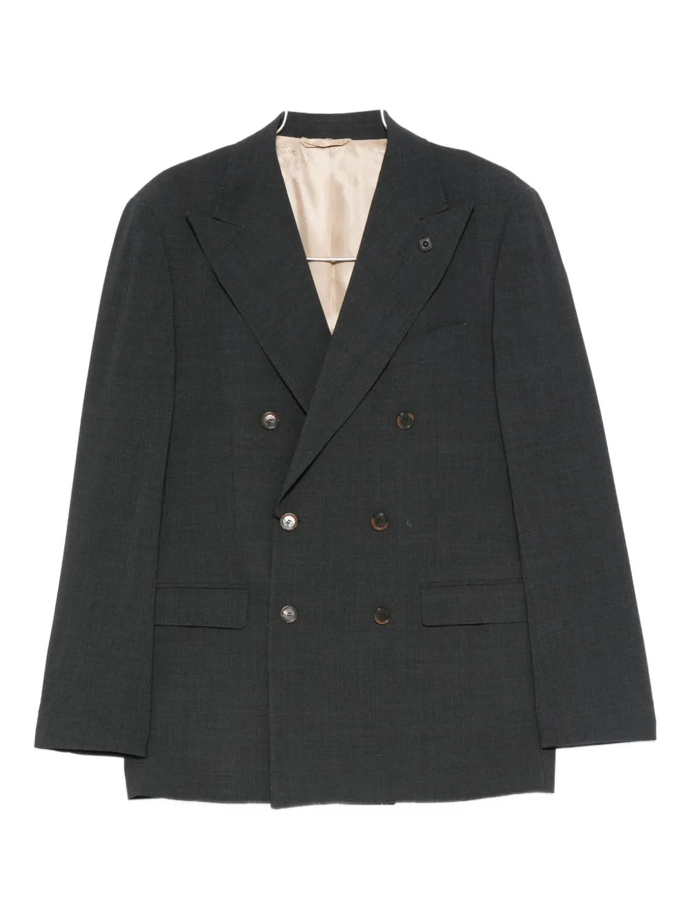 grey double-breasted button fastening lapel collar flap pockets long sleeves