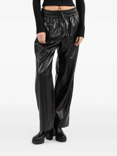black elasticated drawstring waistband side pockets rear welt pocket wide leg