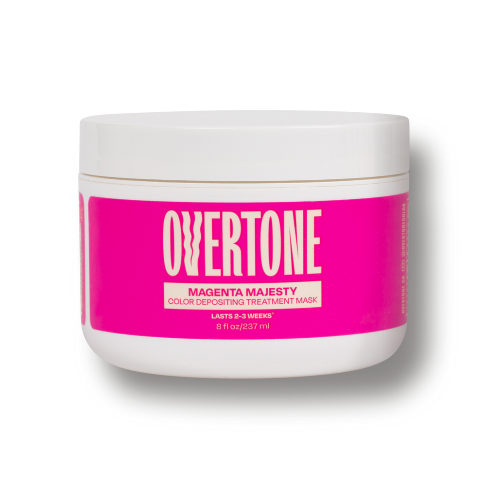 Semi Permanent Color-Depositing Deep Con. Features: Deep conditioning mask with high pigment impact.. Color depositing only. No bleaching or stripping.. Effective formulas on starting shades blonde to brown.. Cares for hair and scalp.. Vegan and Cruelty Free.. Formulated without Ammonia, Phthalates, Parabens, Synthetic Fragrances.. Earth yes! 30% PCR sustainable packaging.. Less toxic with +10 natural actives.. Lasts 2-3 weeks or up to 10 washes.. Individual color results may vary.. Use with our Daily Color Depositing Conditioner to maintain color for longer.. Overtone Haircolor is where healthy hair and real color meet.. Formulated Without: Ammonia. Parabens. Pthalates. Synthetic Fragrance. Key Ingredients: Packed with hair goodness, gloss goals and scalp love!. Hydrolyzed Pea Protein to help strengthen hair.. Shea Butter deeply moisturizes and softens.. Coconut Oil protects hair and reduces frizz.. Castor Oil supports healthier-looking hair and promotes growth.. Aloe Leaf Juice soothes scalp and hydrates hair.. Argan Oil smooths cuticle for high shine.. Jojoba Oil adds lightweight shine and locks in moisture.. Sweet Almond Oil softens and smooths to reduce frizz and boost shine.. Horsetail Extract is rich in silica to help strengthen strands and smooth hair.. Rosemary Oil enhances scalp integrity.. Spearmint Oil helps balance the scalp.. Peppermint Oil revitalizes the scalp with cooling and tingling sensation.. Willow Bark Extract gently exfoliates the scalp..