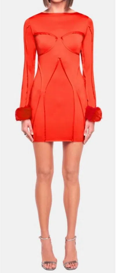 The kind of easy and flattering dress you'll be reaching for all season long.The Ciara Mini Dress by OW Collection is a stunning choice for any occasion, featuring sophisticated long sleeves with detachable faux fur details. This red bodycon mini dress is crafted from 90% polyester and 10% elastane, ensuring a textured and contoured fit. A pull-on style with flattering contour darting and a boatneck, this dress brings maximalist charm to your spring wardrobe. For care, machine wash using mild detergent, iron only, and dry flat to maintain its elegance. The model is 5'10" (177 cm) tall and wears a size S (EU 36, UK 8, US 4); consider sizing up as the dress runs small.