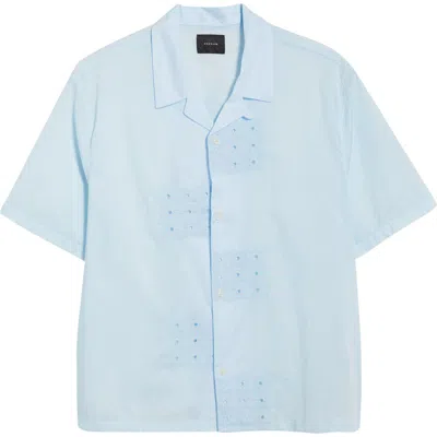 PACSUN Ritz Pointelle Cotton Poplin Camp Shirt In Blue