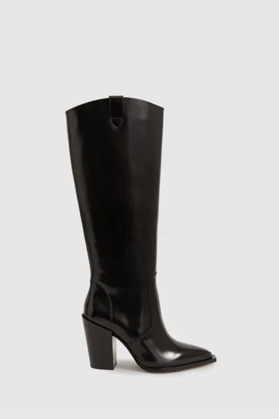 The Pacey boots are a knee-high style crafted from a sleek, high-shine leather. An extended welt elegantly frames the pointed toe with a squared edge, whilst the stacked block heel adds height. 100% leather Knee high Extended welt with squared toe edge Double pull tab Pointed toe Stacked block heel Short side zip Paige applies fabric technology, expert fit know-how and a Los Angeles style sensibility to create unique denim wear and lifestyle garments with enduring appeal
