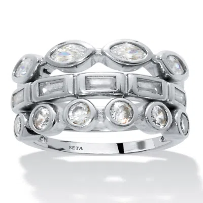 PALM BEACH JEWELRY 3-set Stack Silvertone Multi-shape Ring Set In White