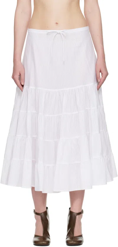 PALOMA WOOL Long Etoile Stripe Tiered Cotton Maxi Skirt In White
