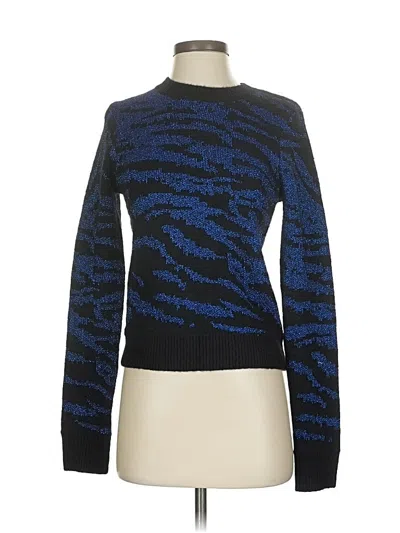 Pam & Gela Pullover Sweater Item Details: Blue, Animal Print Pattern, Crew Neck, Long Sleeve, Velvet, Women's Tops, Polyester/Metallic/Acrylic