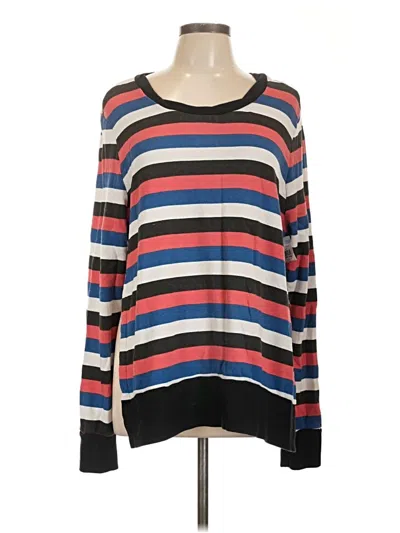Pam & Gela Pullover Sweater, Size: Large. Item Details: Blue, Stripes Pattern, Scoop Neck, Long Sleeve, Women's Tops, Cotton/Modal