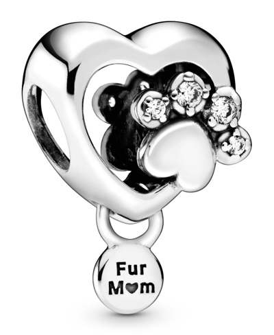 PANDORA Paw Heart Sterling Silver Charm With Clear Cubic Zirconia In Metallic