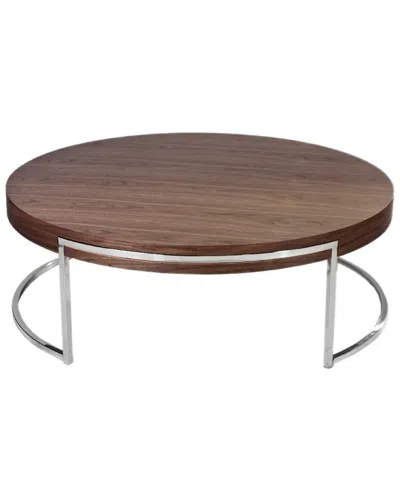 Walnut Brown Wood Veneer Side Or End Table With Uniquely Placed High Polished Metal Legs Part Of The Riso Collection Table Measures 22In Wide X 22In Deep X 20In High Some Assembly Required Care Instructions: Wipe With Damp Cloth Imported