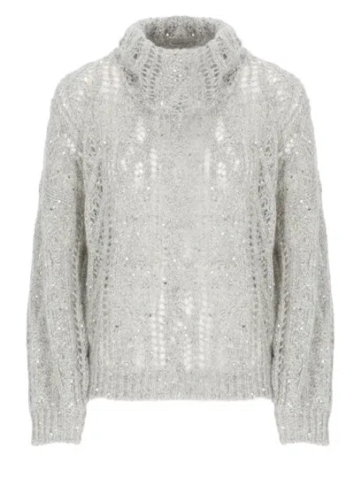 - Panicale grey alpaca wool sweater for woman - High neck - Long sleeves - All-over paillettes detailsModel's height is 179 cm and she wears a size 40