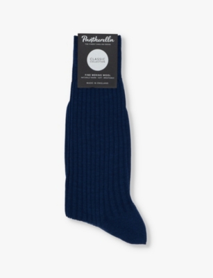 PANTHERELLA Mens Dark Blue Laburnum Branded Wool-blend Socks