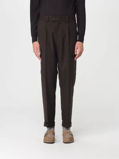 brown belt loops button fastening pleated side cargo pocket back welt pocket