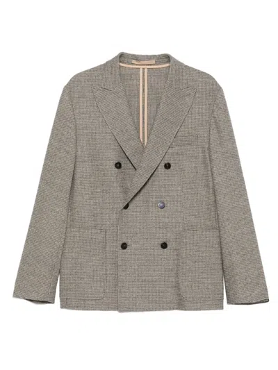 PAOLO PECORA Checked Double-breasted Jacket In Gray