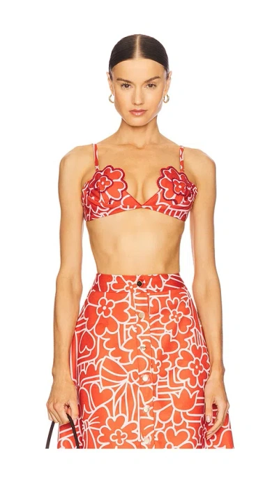 Papa Don't Preach x REVOLVE You Got Me in Pieces Top in Red. - size XS (also in L, M) Papa Don't Preach x REVOLVE You Got Me in Pieces Top in Red. - size XS (also in L, M) Papa Don't Preach x REVOLVE Twill textile. Dry clean recommended. Back hook and eye closure. Padded cups. Floral cup design. Midweight twill fabric. Item not sold as a set. PDON-WS5. 1935.