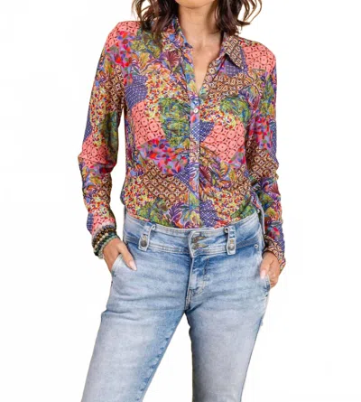 PAPARAZZI Mesh Print Rouched Front Blouse In Patchwork In Multi