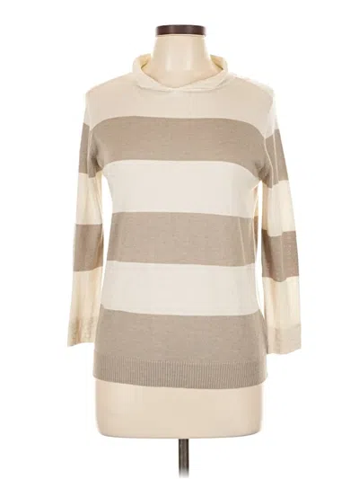 Paper Crown Pullover Sweater, Size: Medium. Item Details: Tan, Stripes Pattern, 3/4 Sleeve, Women's Tops, Acrylic/Rayon/Spandex
