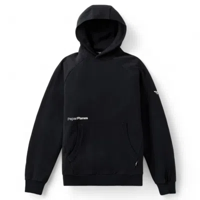 This relaxed-fit hoodie is crafted from mid-weight 11.5 oz stretch fleece, offering comfort and warmth. The front showcases a screenprint 'Paper Plane' graphic, while the sleeve boasts a 3D molded plane. Additional details include a laser-cut tape plane icon on the back shoulder, a flag logo label on the kangaroo pocket, and inner neck taping that reads "Greatness Is A Process." Made of 95% cotton and 5% elastane, it is finished with a printed main label.
