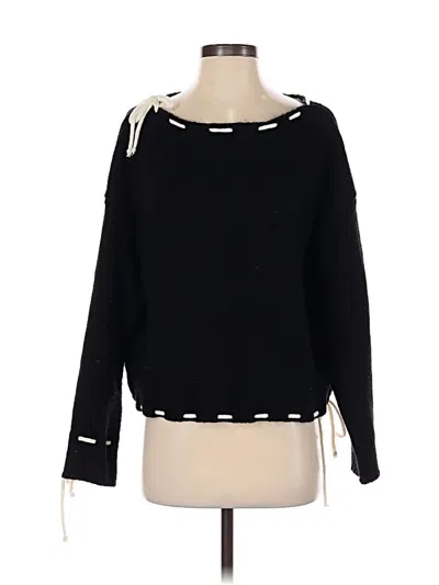 Papermoon Pullover Sweater, Size: Medium. Item Details: Black, Keyhole Neckline, Long Sleeve, Lace Up, Women's Tops, 100% Acrylic