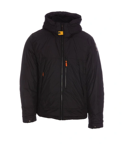black ripstop texture water-repellent windproof logo patch at the shoulder contrast stitching drawstring hood high neck long sleeves adjustable press-stud fastening cuffs ribbed cuffs and hem two side concealed zip-fastening pockets front zip-fastening pocket internal touch-strap fastening pocket branded zip puller authenticity QR code front press-stud and zip fastening