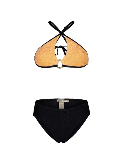 peach/black ring detail criss-cross back straps brief cut textured Be mindful to try on swimwear over your own garments.