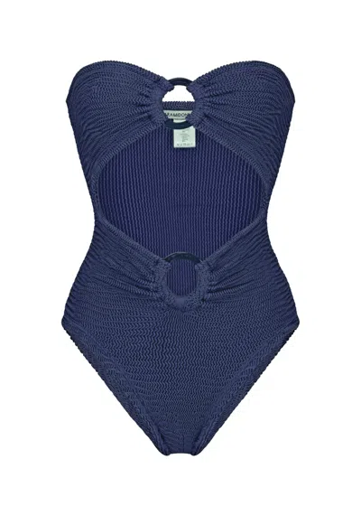 Features Include Unlined High-cut High-rise Bandeau style Cut-out detailing Smocked construction Two rings hardware detailing Material & Care 97% Polyamide & 3% Elastane Air dry only Gentle hand wash Do not tumble-dry Avoid rough surfaces Do not iron or bleach Be careful with oils & tinted sunscreen Size Guide Fits XS to 2XL One size fits most