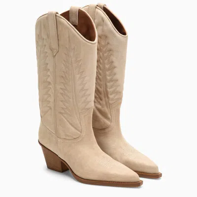 Paris Texas beige suede boots, iconic Texan design, contrasting black sole..
