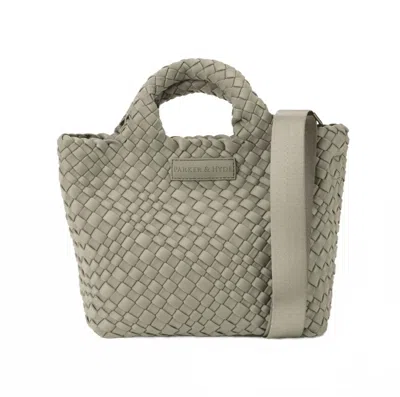 PARKER AND HYDE Woven Mini Tote In Stone In White