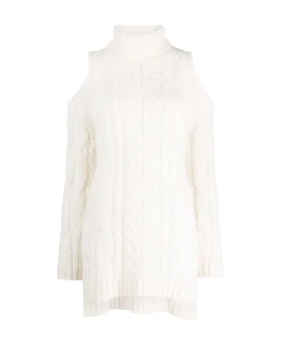 P.A.R.O.S.H Chunky Cable-knit Cold-shoulder Jumper Turtleneck In White
