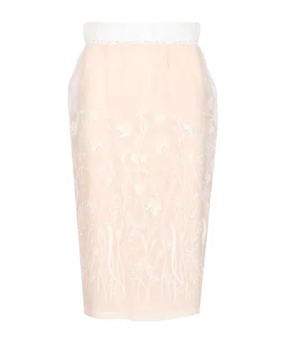 P.A.R.O.S.H Embroidered Longuette Skirt Skirts White In Multi
