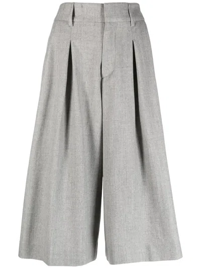 pleat-detail wide-leg cropped trousers from P.A.R.O.S.H. featuring light grey, virgin wool-cashmere blend, mélange effect, pleat detailing, high-waisted, belt loops, concealed front fastening, two side slash pockets, two rear welt pockets, wide leg and cropped leg.