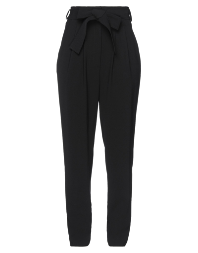 P.A.R.O.S.H. Pants. crepe, basic solid color, belt, high waisted, regular fit, tapered leg, zipper closure, multipockets, stretch. 97% Polyester, 3% Elastane