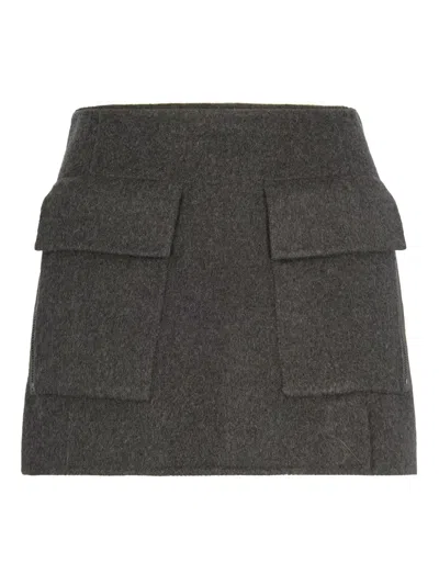 P.A.R.O.S.H Regular Fit Wool Skirt With Flap Pockets And Zip Closure In Gray