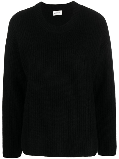 ribbed-knit cashmere jumper from P.A.R.O.S.H. featuring black, cashmere, chunky ribbed knit, round neck, long sleeves, ribbed cuffs and hem and straight hem.