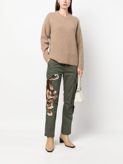 ribbed-knit cashmere sweatshirt from P.A.R.O.S.H. featuring beige, cashmere, ribbed knit, crew neck, long sleeves and straight hem.