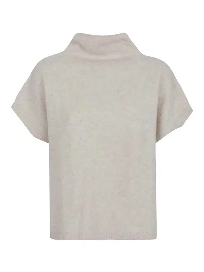 Parosh racoon sweater, high neck, short sleeves, ribbed elastic trim, relaxed fit design.