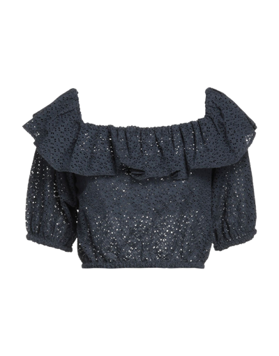 lace, ruffles, solid color, wide neckline, short sleeves, no pockets , Color: Midnight blue , Size: M