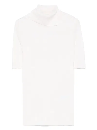light beige roll neck short sleeves ribbed knit
