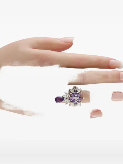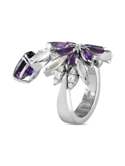 18kt white gold polished finish prong-set marquise-cut and pear-cut amethyst prong-set marquise-cut and brilliant-cut white diamonds totalling 0.45 concave band Normal everyday use and external agents may reduce the lustre of gemstones and gold surfaces. To maintain, use specific, non-abrasive products specially meant for cleaning jewellery. Condition: EXCELLENT. This previously owned item is in near-perfect condition with no signs of damage or use.