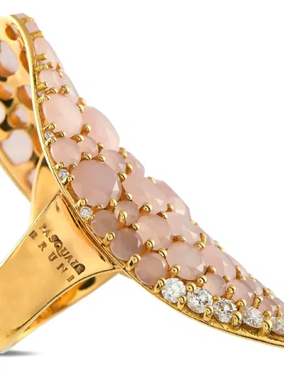 gold-tone 18k yellow gold rose quartz gemstones diamond embellishments Normal everyday use and external agents may reduce the lustre of gemstones and gold surfaces. To maintain, use specific, non-abrasive products specially meant for cleaning jewellery.