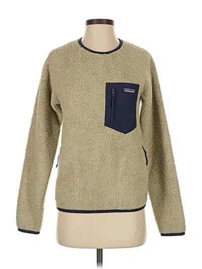 Patagonia Pullover Sweater, Size: X-Small. Item Details: Tan, Tweed Pattern, Crew Neck, Long Sleeve, Shearling, Women's Tops, 100% Polyester