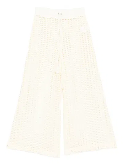 off white knitted design drawstring fastening open knit tassel detail