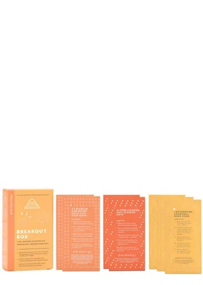 Product Details This is a Beyond Beauty product which means it has been sourced tried and tested and finally declared one of the most new and innovative heroes out there. Gentle and effective ingredients meet customised pore care in Patchology's Breakout Box trio of mighty little blemish-tamers. Clear up and de-clog skin to start undoing your blemishes in a matter of hours. You're just one box away from total pore clarity. ; Blemish Shrinking Salicylic Acid Dots contain a potent blend of salicylic acid and tea tree oil to dissolve dead skin cells and target skin problems before they erupt. Start getting over your blemish stat. ; When blemishes pop up and you need next-level pore vacuuming Pore Clearing Anti-Blemish Dots work double absorbing the impurity while protecting from fidgety fingers. Say bye-bye to blemishes with these little anti-imperfection dots. ; Detoxifying Charcoal Nose Strips evacuate dirt excess sebum and dead skin cells to decongest and minimise the appearance of enlarged pores. Charcoal and Moroccan lava clay act as a magnet for grime while witch hazel casts an invisibility spell on oil and redness. ; Set contains: 24 x Blemish-Shrinking Salicylic Acid Dots 24 x Pore Clearing Anti-Blemish Dots 3 x Detoxifying Charcoal Nose Strips;; How To Use Nose Strips: Start with a clean face. Thoroughly wet nose to activate adhesive. Peel plastic backing from strip and apply to nose smooth side down. Press to ensure even contact with skin. Allow strip to dry in place for 10–15 minutes until stiff. Gently peel off strip starting at edges and pulling toward centre. Rinse residue. ; Salicylic Acid Dots: Make sure the area is clean. Peel dot from plastic backing. Cover entire blemish with dot pressing to ensure even contact with skin. Allow dot to remain in place for at least 6 hours or overnight. Remove and discard dot. ; Anti-Blemish Dots: Make sure the area is clean. Peel dot from plastic backing. Cover entire blemish with dot pressing to ensure even contact with skin. Allow dot to remain in place for at least 6 hours or overnight. Remove and discard dot. Full Ingredients Pore Clearing Anti-Blemish Dots: Latex-free Hydrocolloid ; Detoxifying Charcoal Nose Strips: PVP VP/VA Copolymer Water (Aqua/Eau) Glycerin Bentonite Charcoal Powder Polyvinyl Alcohol Titanium Dioxide Kaolin Phenoxyethanol Butylene Glycol Potassium Sorbate Moroccan Lava Clay 1 2-Hexanediol Virginiana(Witch Hazel) Aloe Barbadensis Leaf Extract Menthol Sodium Hydroxide Sodium Dehydroacetate Dipotassium Glycyrrhizate ; Blemish-Shrinking Salicylic Acid Dots: Active Ingredients: Salicylic Acid 0.5% Acne Treatment. Inactive Ingredients: Acrylates Copolymer Vinyl Caprolactam/VP/Dimethylaminoethyl Methacrylate Copolymer Water (Aqua/Eau) Alcohol Denat Melaleuca Alternifolia (Tea Tree) Leaf Oil Epilobium Angustifolium Flower/Leaf/Stem Extract Volcanic Ash Sodium Hyaluronate Vitis Vinifera (Grape) Seed Extract Sodium Metabisulfite Butylene Glycol Phytosphingosine ; Phenoxyethanol Polysorbate 80 PVP