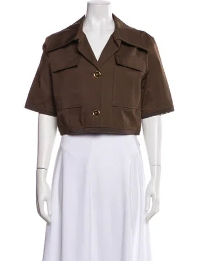 Patou Jacket Brown Grosgrain Trim & Pointed Collar Flap Pockets & Button Closure Fit: Jackets by Patou typically fit true to size. | Patou Jacket in Brown, Women's US8, FR40 | M