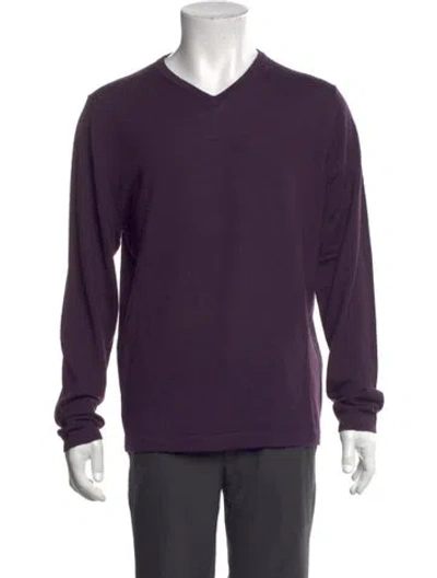 Pre-owned Merino Wool V-neck Pullover In Purple