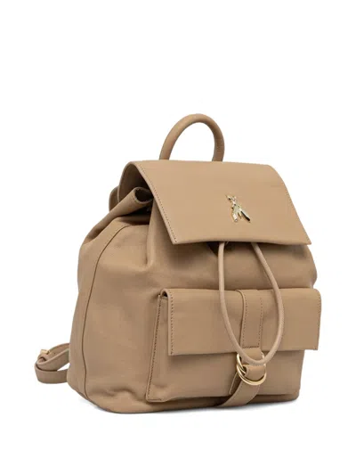 biscuit beige top handle adjustable shoulder straps drawstring fastening gold-tone hardware