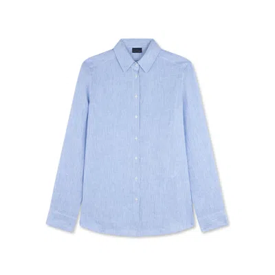 Camicia In Lino Con Motivo A Righe In Bianco Righe Avio