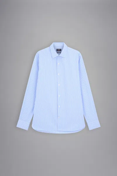 PAUL & SHARK Camicia In Popeline Di Cotone In Azzurro Righe Bianche